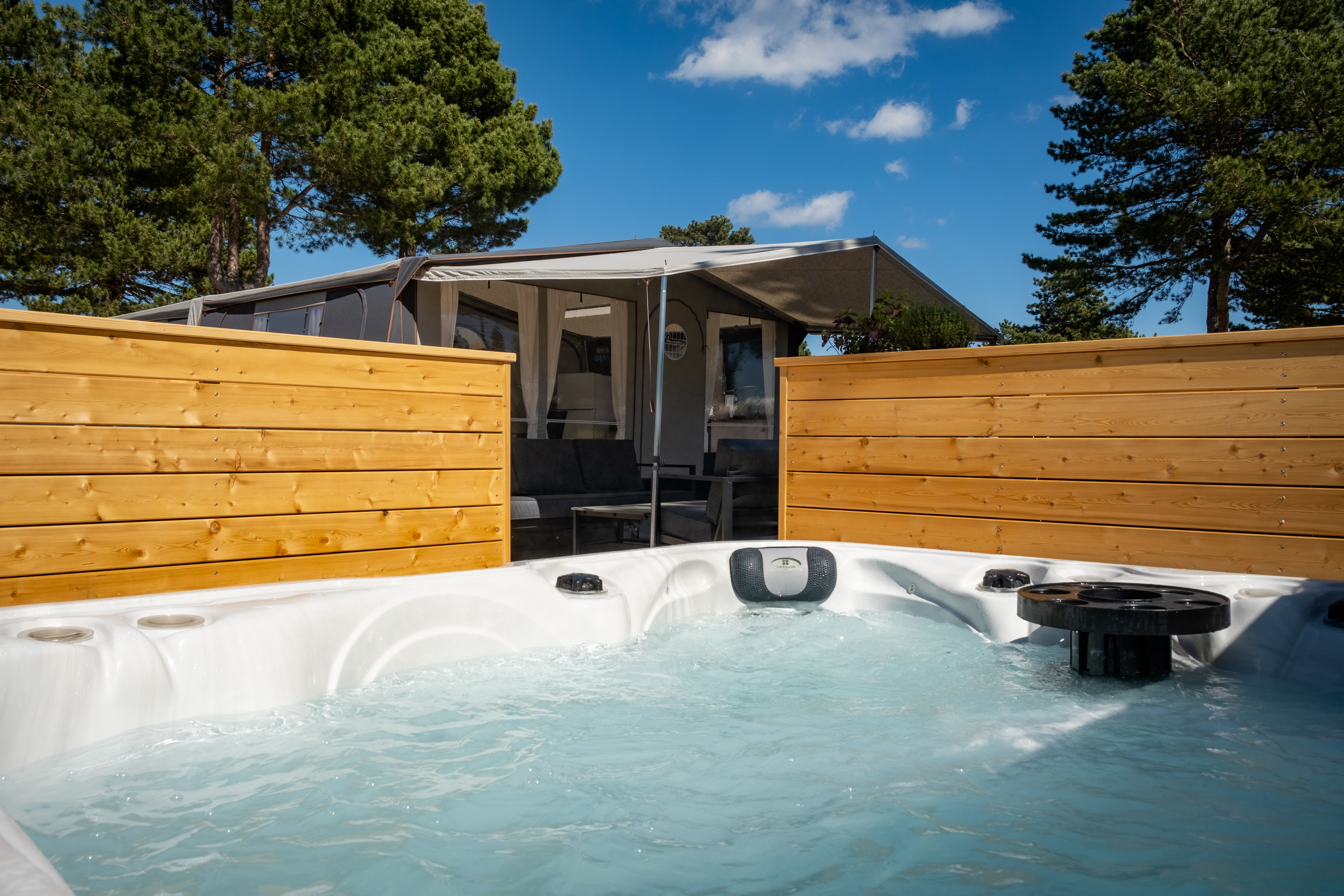 Glamping tent with spa