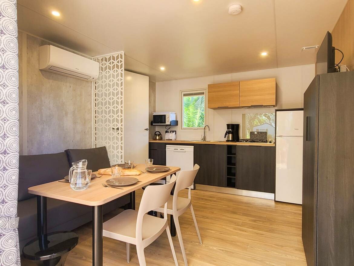 Tijdens uw vakantie op camping Le Pré Catalan draait alles om waterplezier in het 500 m² grote aquapark. U vindt er twee verwarmde zwembaden: een sportbad om actief te zwemmen en een speels bad met bubbelbad en waterstralen om heerlijk te ontspannen. Voor de allerkleinsten is er een verwarmd peuterbad met een vrolijke waterspeeltuin. De vier waterglijbanen zorgen voor eindeloos glijplezier voor het hele gezin. De Middellandse Zee ligt op slechts 1,5 kilometer van de camping. Via een groen wandel- of fietspad langs de rivier de Agly bereikt u binnen tien minuten het fijne zandstrand van Le Barcarès. Hier kunt u ontspannen in de zon, een frisse duik nemen in zee of genieten van de verschillende watersporten op het nabijgelegen meer van Leucate. Het animatieteam staat van ’s ochtends tot ’s avonds klaar om u te vermaken. Begin de dag met een sessie ochtendgymnastiek of doe mee aan een creatieve workshop of een spel bij het zwembad. Voor sportievelingen zijn er toernooien op het multisportterrein en spannende potjes op de petanquebaan. Ondertussen beleven de kinderen eindeloos plezier in de Kids, Juniors en Teens Club of op het vrolijke speelterrein.