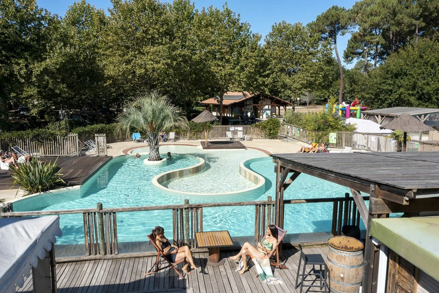 Vanaf de camping heeft u direct toegang tot het grootste meer van Frankrijk. Het water wordt 's zomers 28°C en leent zich uitstekend voor zwemmen en spetteren. Bovendien biedt het meer van Cazaux-Sanguinet een breed scala aan watersporten voor het hele gezin. De camping zelf spreekt waterliefhebbers aan met een verwarmd buitenzwembad en een kinderbad.