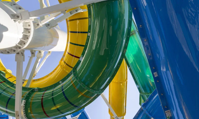 - Het zwemparadijs heeft glijbanen en fonteinen