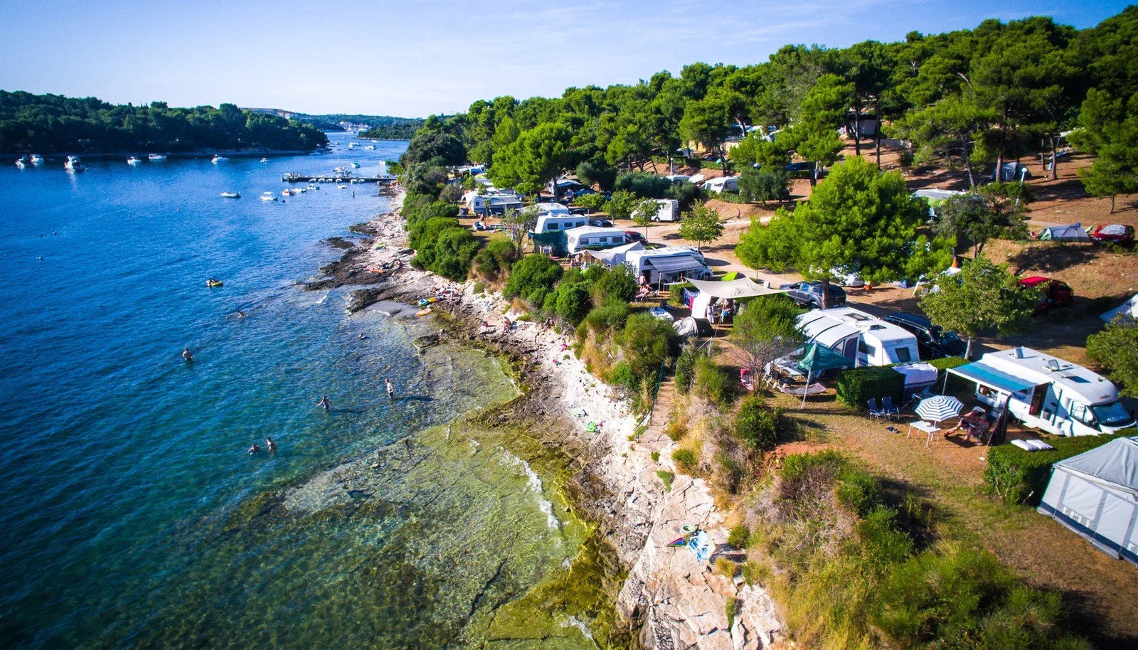 Deze rijkelijk met bomen en ander groen begroeide camping in Kroatië, om precies te zijn op Istrië, is zeer fraai gelegen op een rotsplateau direct aan de azuurblauwe Adriatische Zee. Het 19 hectare tellende park hanteert een milieugerichte bedrijfsvoering en u bent hier van alle campinggemak voorzien. De oogstrelende stad Pula lonkt op een kwartier rijden en op wandel- dan wel fietsafstand ligt Banjole. Geniet van de schatrijke natuur en cultuur op dit mooie schiereiland vanaf camping Indije bij Pula.