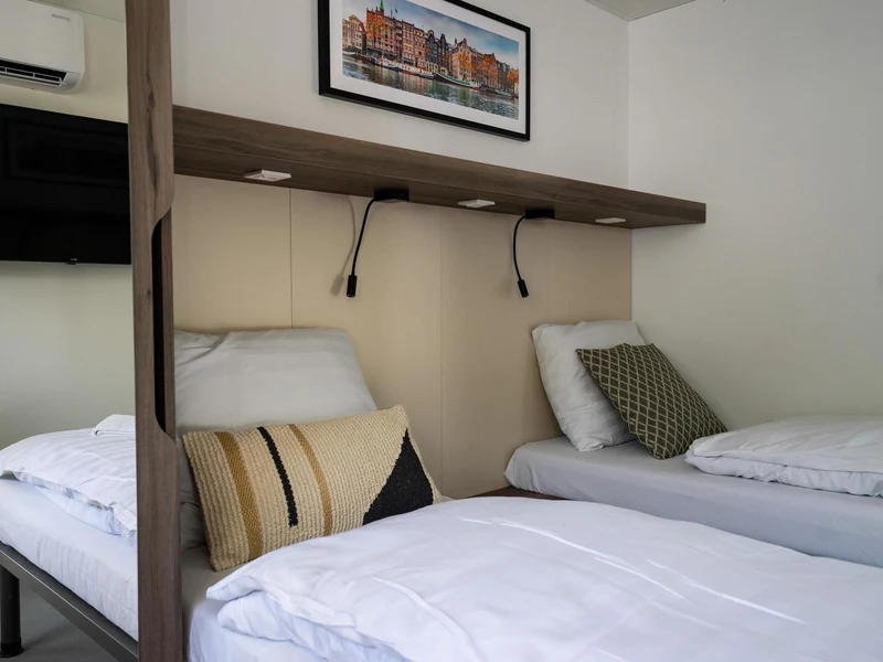 Het terrein is omgeven door weiden, bomen en waterpartijen, en daartussen kunt u zelfs Schotse Hooglandrunderen zien. Het is slechts een paar minuten lopen naar de tramhalte en u kunt gemakkelijk met de tram naar het centrum van Amsterdam. Hier heeft u de mogelijkheid om allerlei bezienswaardigheden te bekijken en gedeelde herinneringen te maken tijdens bijvoorbeeld een rondvaart.