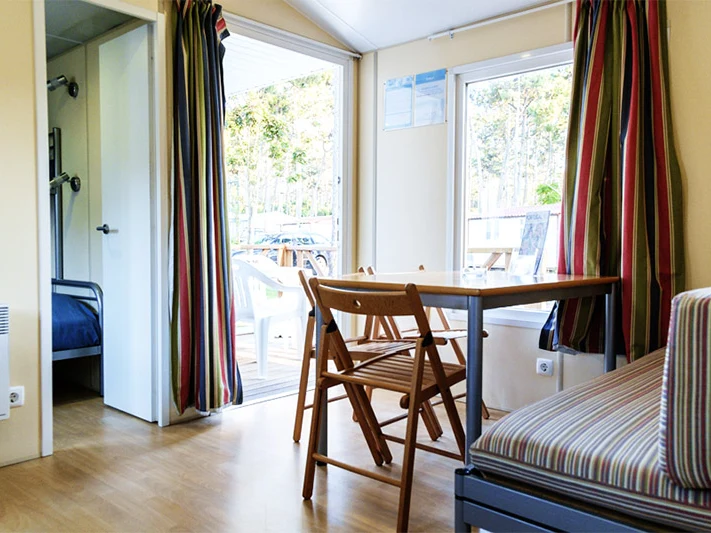 De camping ligt naast een hoge duinrand waarachter het zandstrand via enkele trappen na ongeveer 10 minuten wandelen wordt bereikt. Het strand is een populaire spot voor windsurfers. Op de camping is tevens een buitenzwembad met een ligweide aanwezig. Uw stacaravan is voorzien van een privéterras en een eigen badkamer. Standaard beschikt u over een kitchenette en een zithoek met televisie. Hier kunt u luxe kamperen en volledig tot rust komen. De staf zal u aanspreken in het Spaans, Frans of Engels