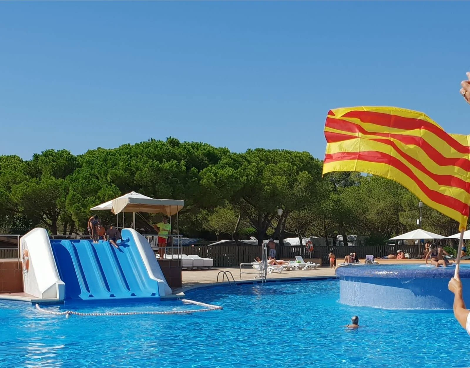 - Het zwembad heeft een lagune-stijl en glijbaan
